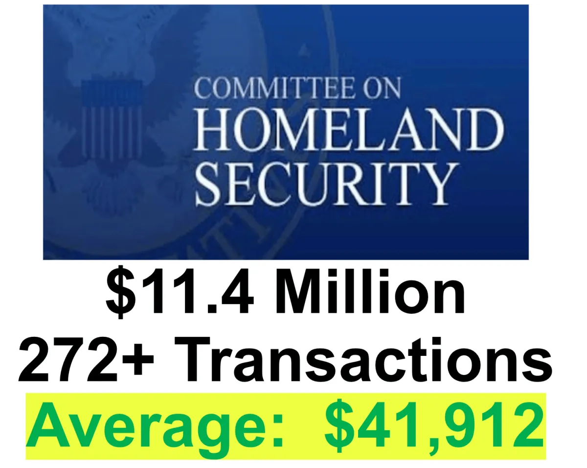 The Committee of Homeland Security: A whopping $11.4 million in trades over 272 transactions, averaging $41,912 each.